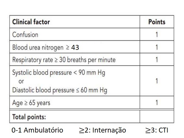 Quais critérios devemos usar para internar um pct com PAC?