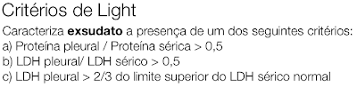 Após obtenção do líquido por toracocentese quais critérios devemos utilizar para diferenciar de transudato e exsudato?