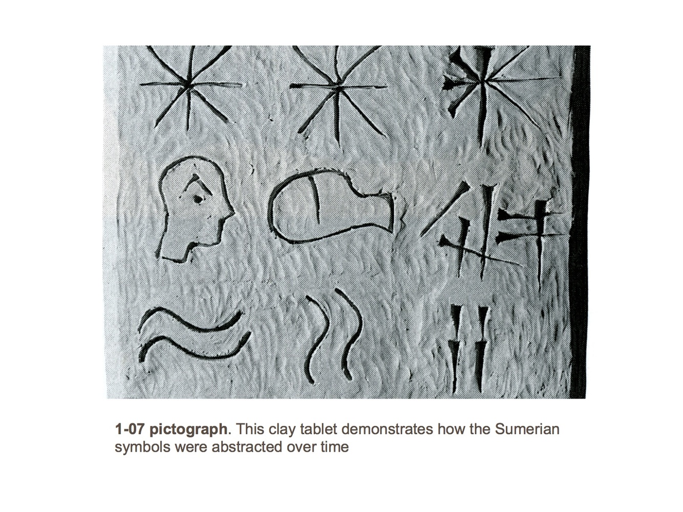 pictograph. This clay tablet demonstrates how the Sumerian symbols were abstracted over time