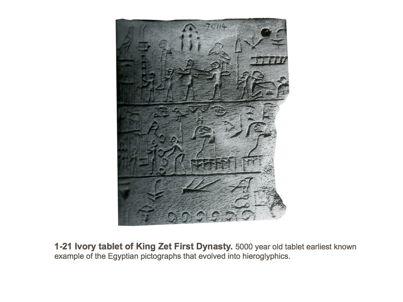 Ivory tablet of King Zet First Dynasty. 5000 year old tablet earliest known example of the Egyptian pictographs that evolved into hieroglyphics.