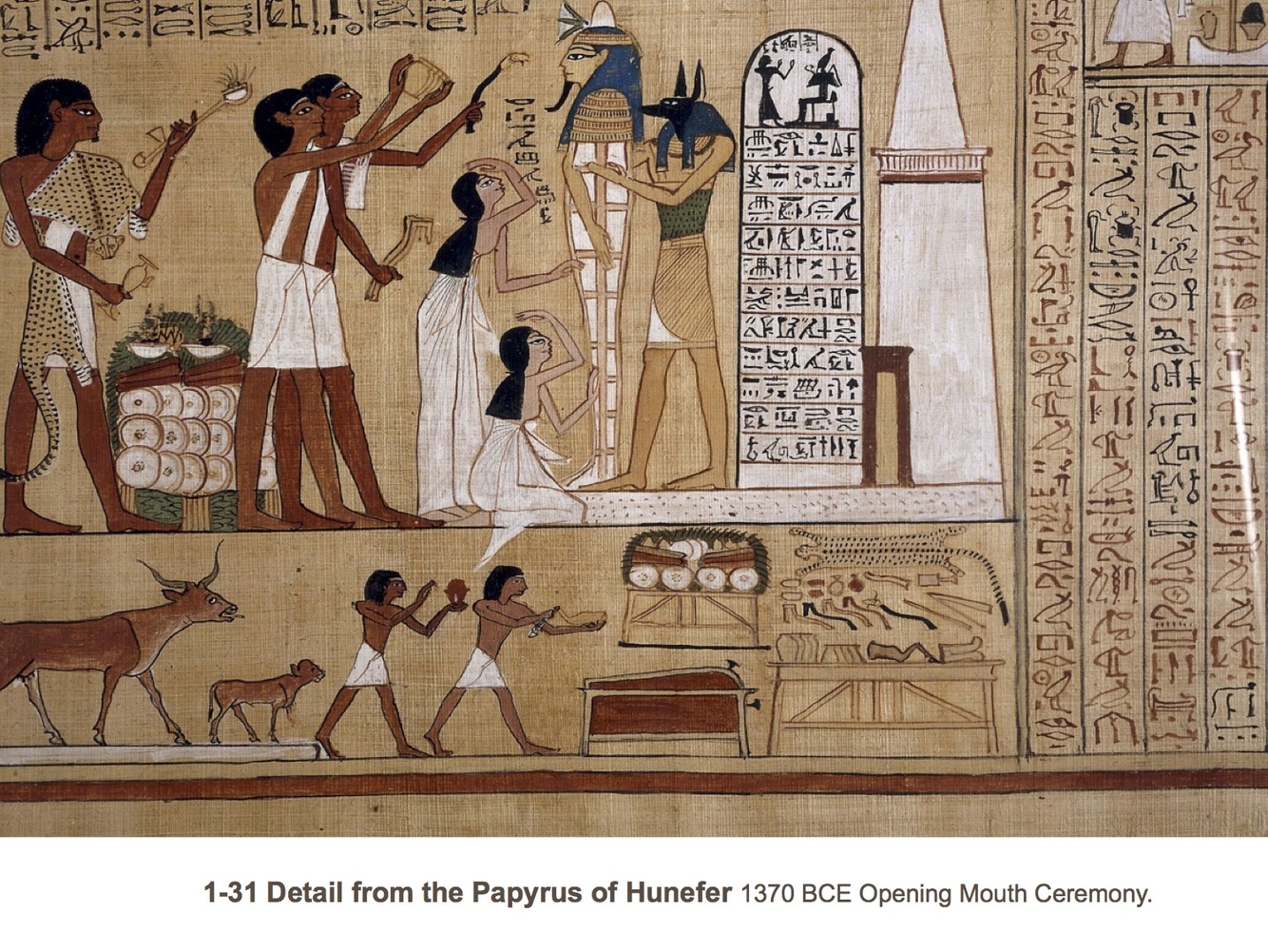 Detail from the Papyrus of Hunefer 1370 BCE Opening Mouth Ceremony.