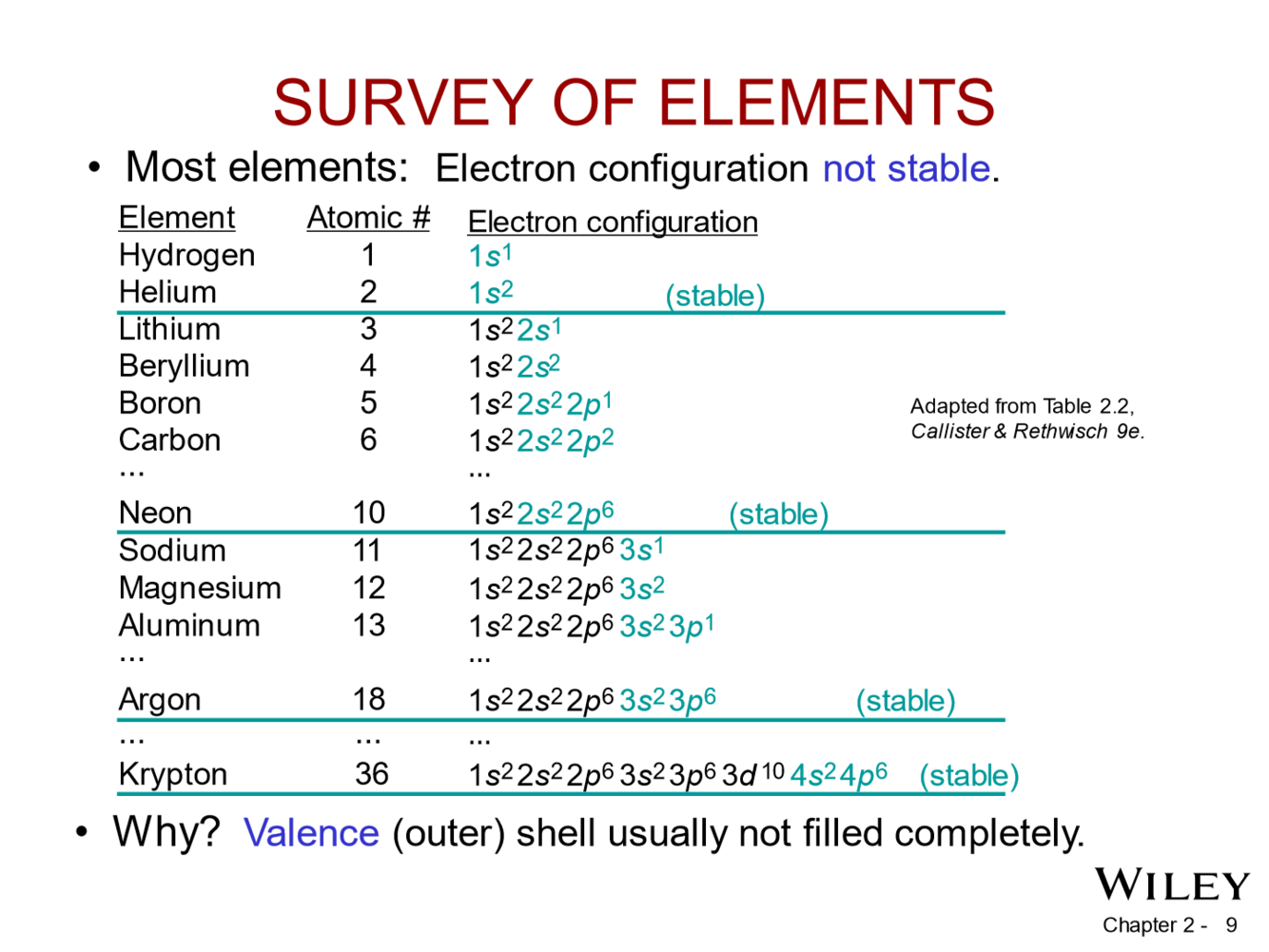 Na (metal, unstable ) CI (nonmetal, unstable)