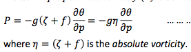 The isentropic potential vorticity P is a multiplicative function of two factors: