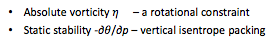 cyclonic rotation is strong (n > 0) and/or where static stability is large