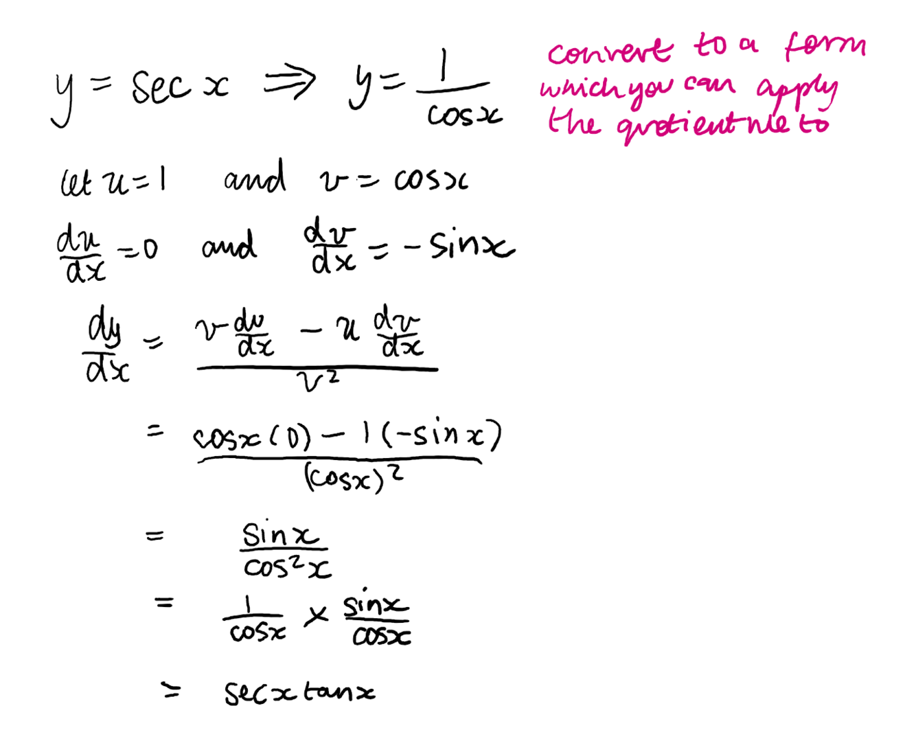 prove that if y=secx dy/dx = secxtanx