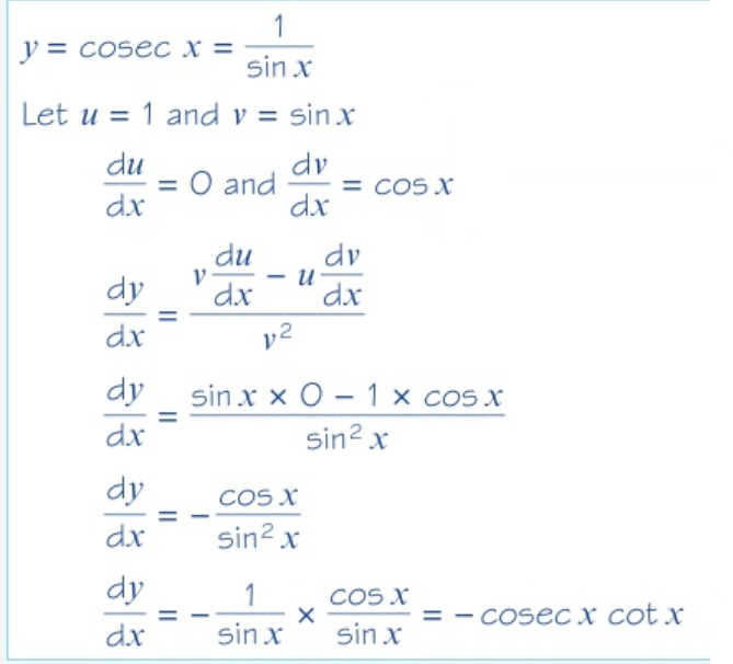 prove that if y = cosecx, dy/dx= - cosecx cotx