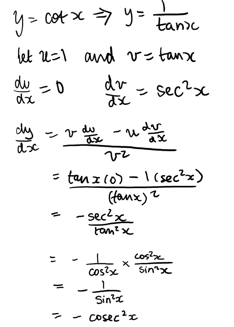 prove that if y=cotx, dy/dx=-cosec2x