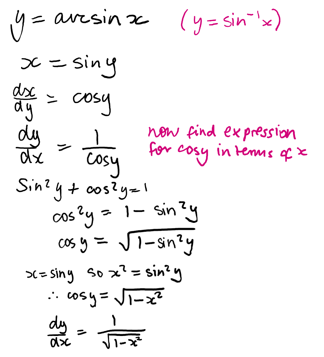 if y=arcsinx find dy/dx