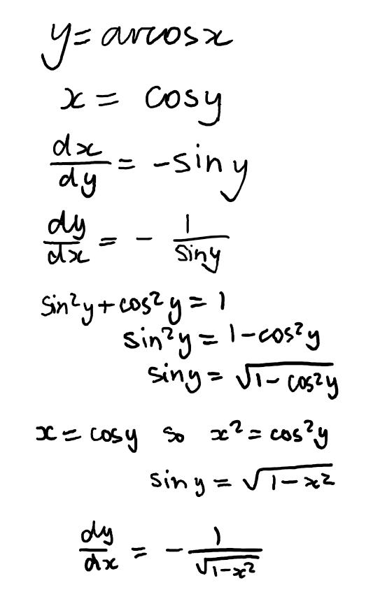 if y=arcosx find dy/dx