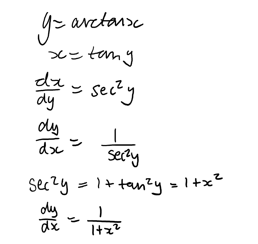 if y = arctanx find dy/dx