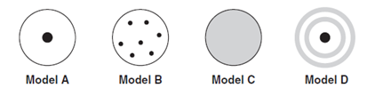 The diagrams below show possible structures for atoms based on different models, A-D.