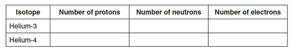 Complete the following table to show the atomic structures of helium-3 and helium-4.