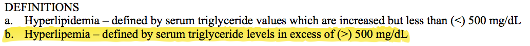 Serum Triglyceride Levels in Excess of 500mg/dL