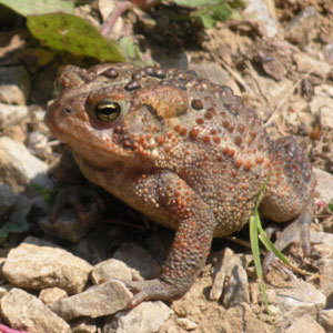 Description: Skin coloration is typically brown or reddish. One or two warts are present in each of the large dark blotches on their back. The white chest usually has dark speckles. The parotoid gland is typically separated from the cranial ridge.