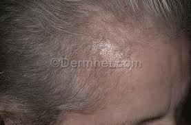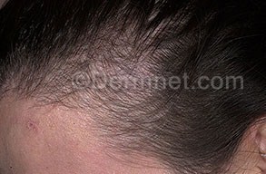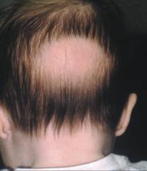 (Traction alopecia - note the peripheral fringe; likely due to tight ponytails)