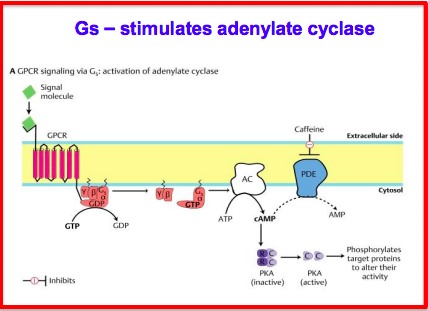 What occurs when a signaling molecule binds to a GPCR using Gs pathway?
