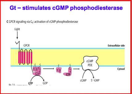 What occurs when a signaling molecule binds to a GPCR using Gt pathway?