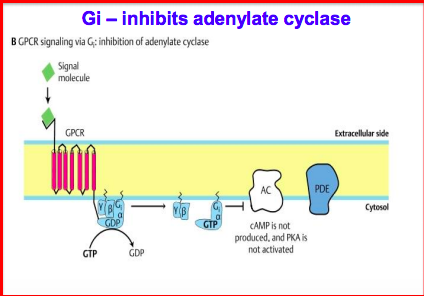 What occurs when a signaling molecule binds to a GPCR using Gi pathway?