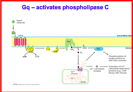 What occurs when a signaling molecule binds to a GPCR using Gq pathway?