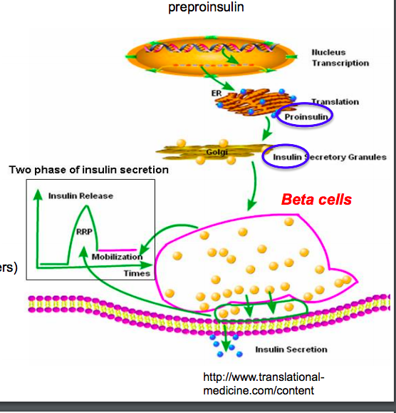 Describe the basic process underlying insulin synthesis and secretion