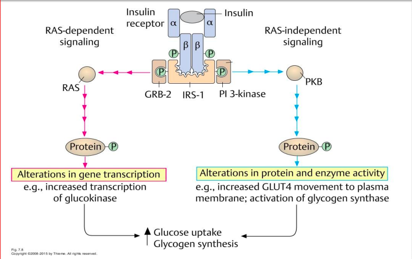 Describe the mechanism upon insulin binding the RTK that involves the RAS pathway.