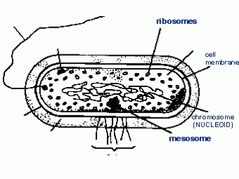 The mesosome is where chromosomal DNA attaches to the bacterial membrane invaginated at the site of bacterial division.