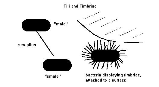 They are either used for attachment to surfaces (adherence pili) or for bacterial conjugation (sex pili)