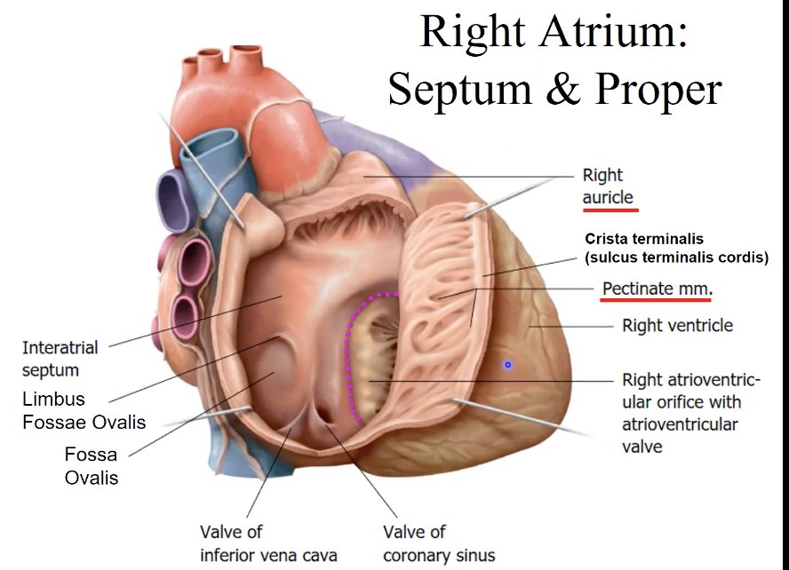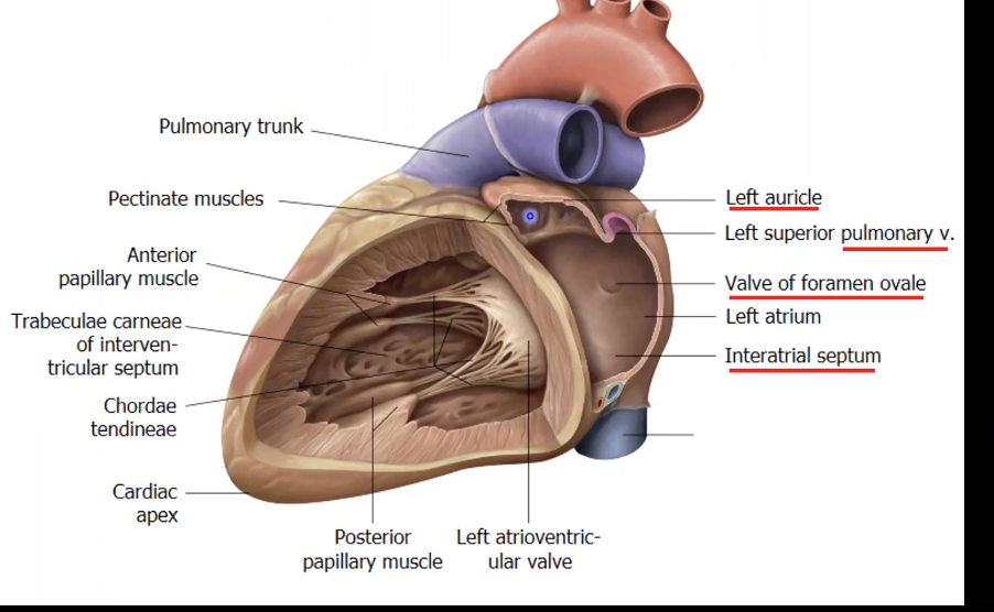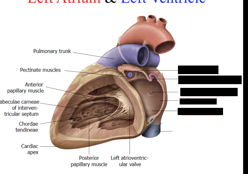 Identify the indicated features of the left atrium & note any unique characteristics of the left atrium