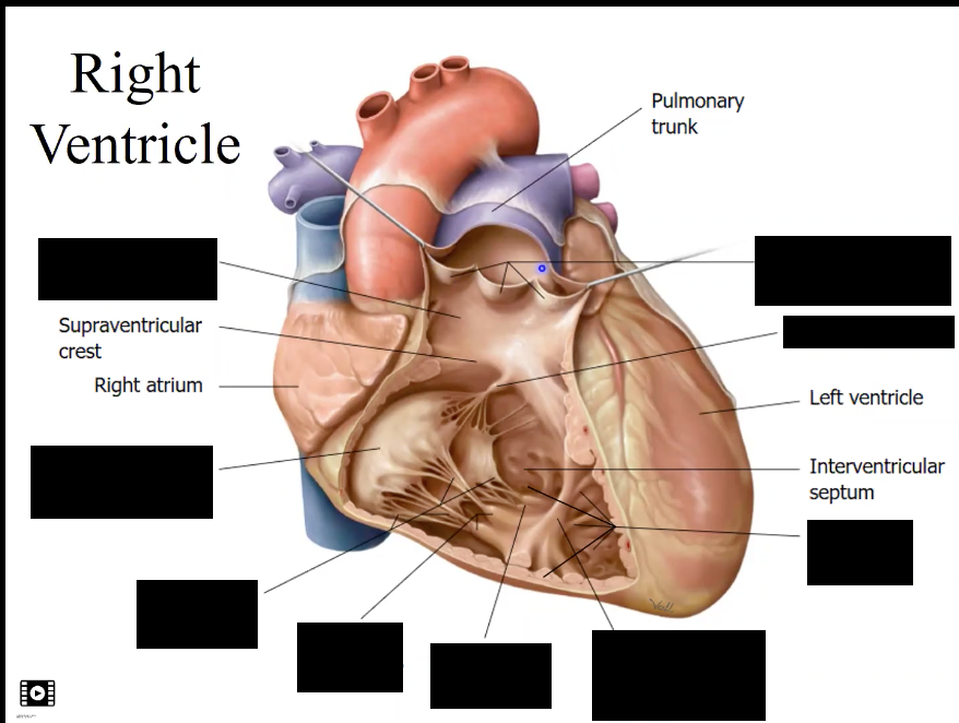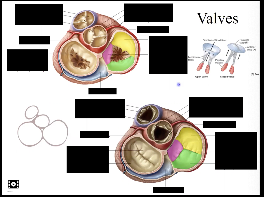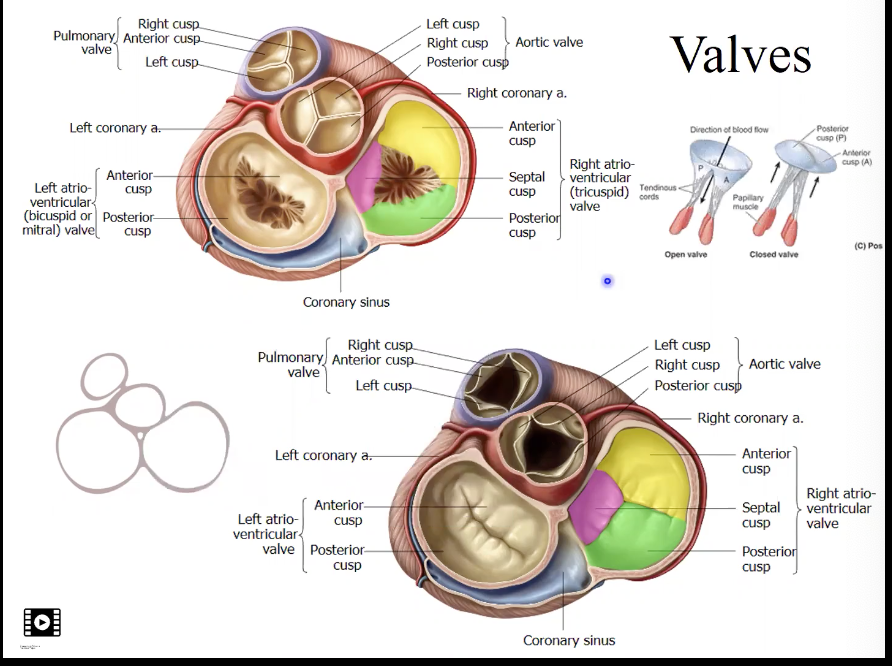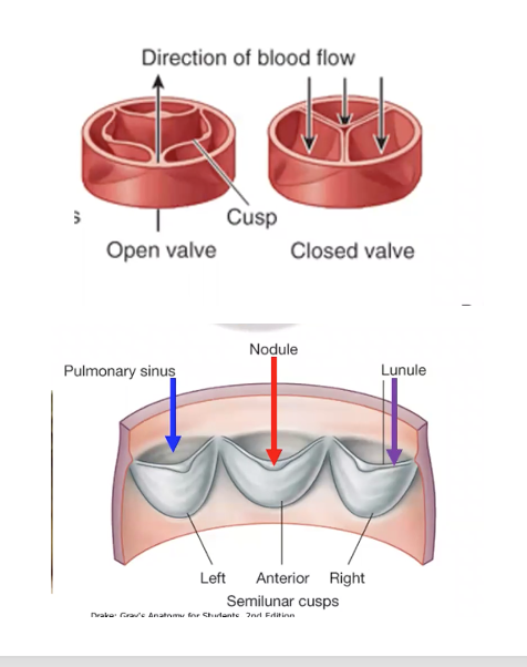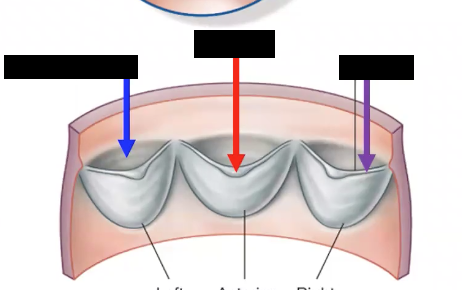 Describe how the valves between the ventricles & trunks work and identify the inidicated components in the provided image