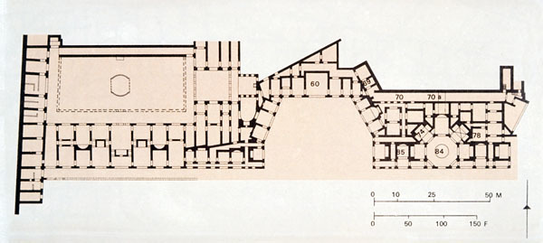 Radial rooms create lateral support for dome. Intricate architecture allows the reflection of light into the octagonal rooms.