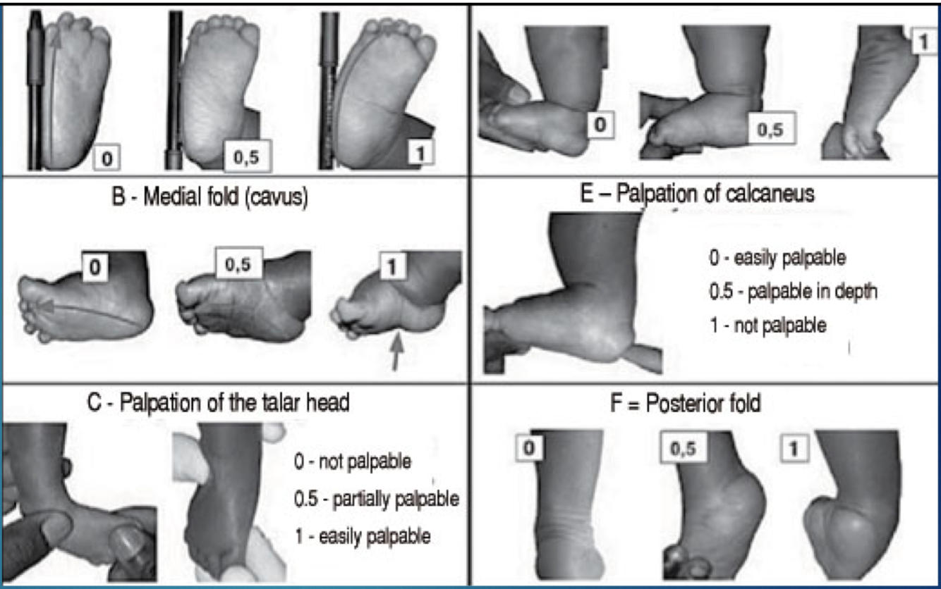 when performing the 6 Pirani physical exam findings,