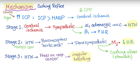 Det kommer sent i förloppet (efter kompensation inte fungera mer) och vi har fått inklämning mm è detta är då sista symtomen innan en patient dör – och man måste då akut ge behandling för att rädda patient.