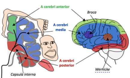 Även capsula interna, balsala ganiliger och talcentrum med Wernices och Brocas