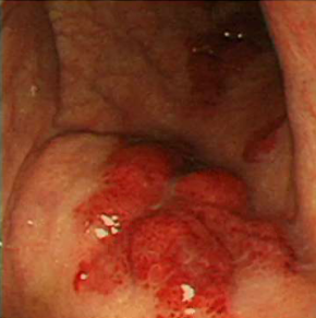 Visceral Kaposi sarcoma in the GI and respiratory tracts. Note the hypochromatic RBCs indicating iron-deficiency anemia from GI blood loss.