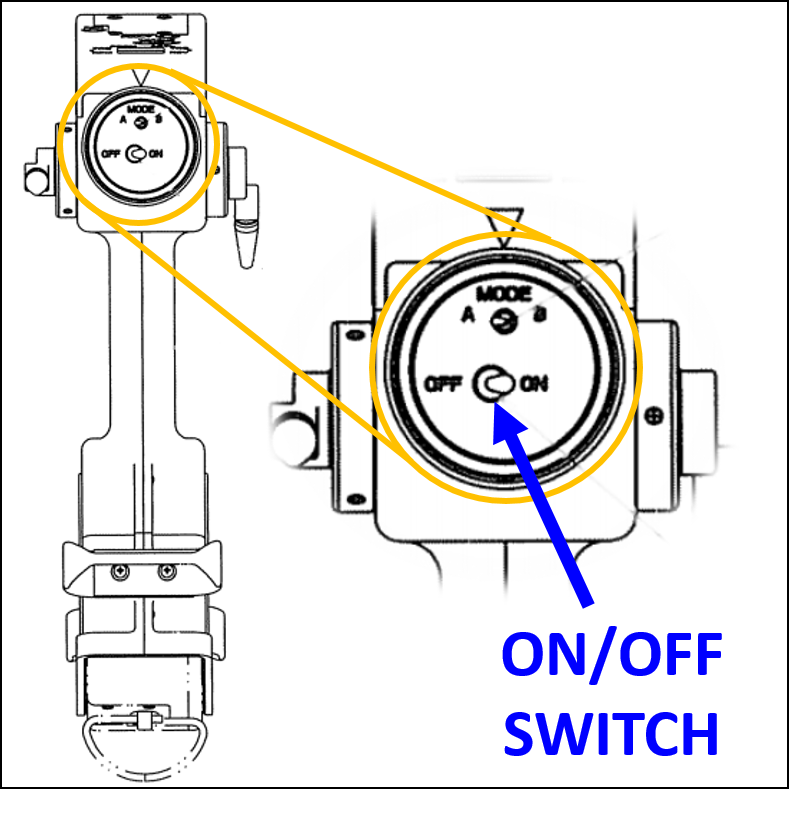 Where is the ON/OFF SWITCH Located and what must be done prior to use?