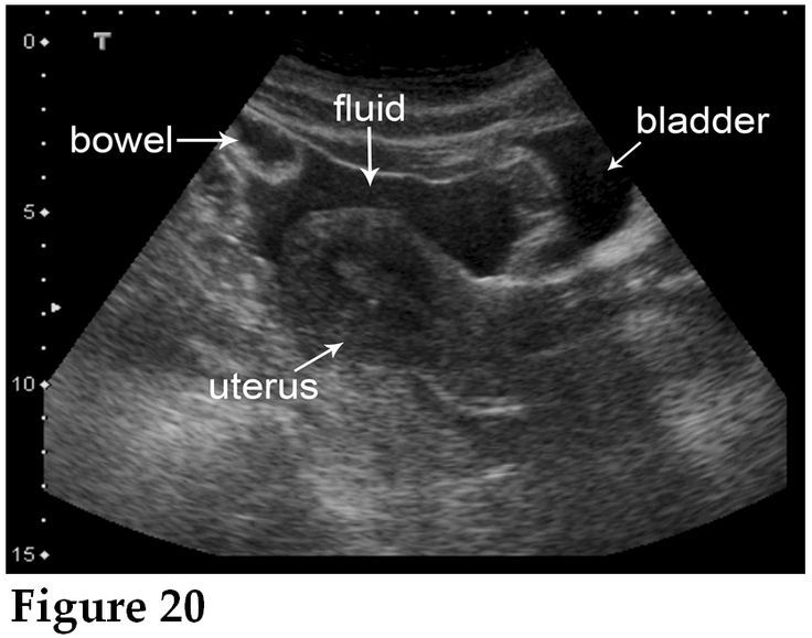 (this is a normal finding for preggos along with corpus luteum ovarian cyst UNLESS IT’S IN THE SETTING OF ECTOPIC. THEN IT MEANS HEMOPERITONEUM)