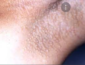 Fox-Fordyce disease - small dome-shaped flesh coloured to red papules affect all hair follicles in the area