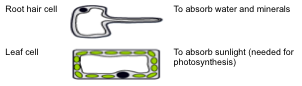 Vacuole – contains cell sap, stores water and minerals & helps in cell structure