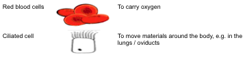Capillary – links arteries and veins: is very thin allowing oxygen and glucose to diffuse out of the blood into the cells and carbon dioxide and urea from the cells to the blood