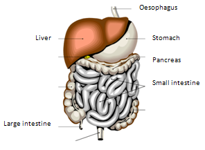 Large intestine – absorbs the water and compacts the waste into faeces (poo)