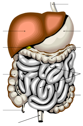 Small intestine – adds all three enzymes and digests and absorbs all the food