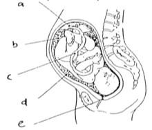 Label the following picture of a foetus in the uterus, explaining what each part does: -
