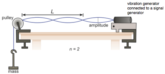 Describe, with a diagram, how you could produce a stationary wave on a string (3)