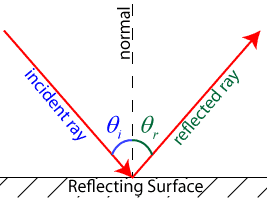 A light ray incident on a reflective surface will be reflected at the same angle to the normal to the surface.