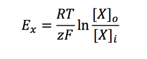 Remember that the [square brackets] represent concentration and R, T, z and F are all constants