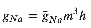 Some parameters of the HH model: Nernst potentials (E_Na, E_leak, E_K); capacitance, leak conductance, current input, maximum conductances.