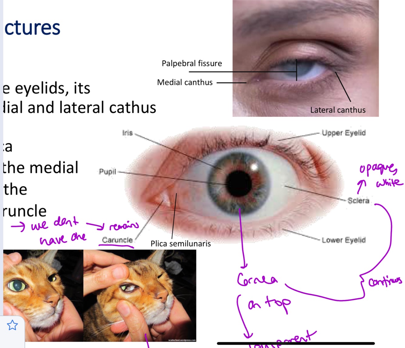 what is the lacrimal caruncle and plica semilunaris of the eye?