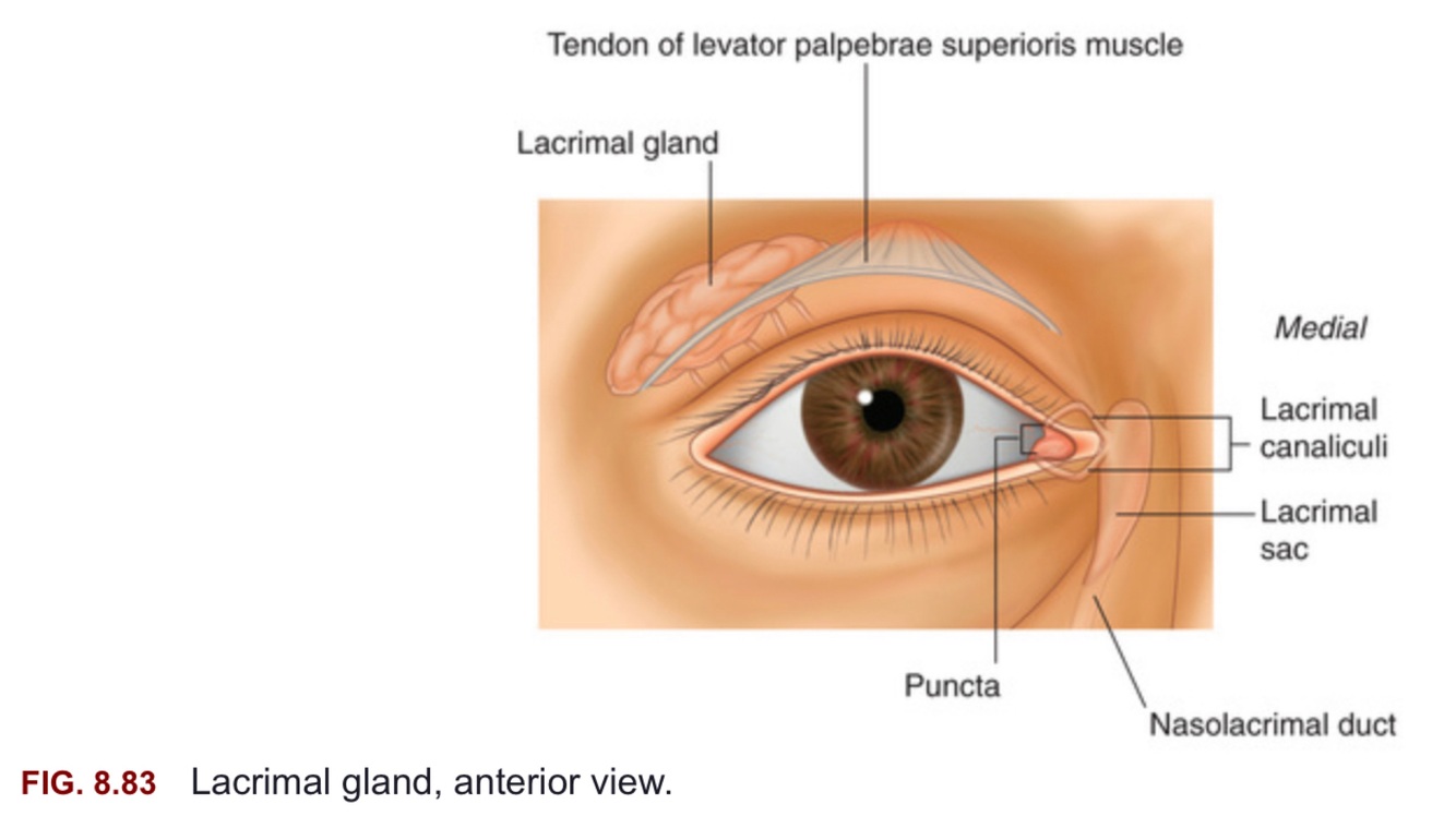 what is the location of the puncta, lacrimal canaliculi, lacrimal sac, nasolacrimal duct?