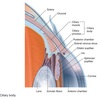 ciliary = behind the roots of eyelashes (infection of these cause styes)