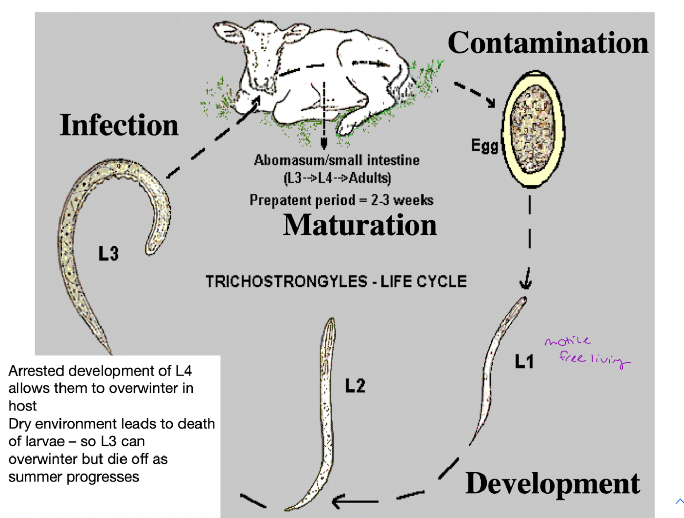 what is the basic lifecycle of most trichostrongyle worms?